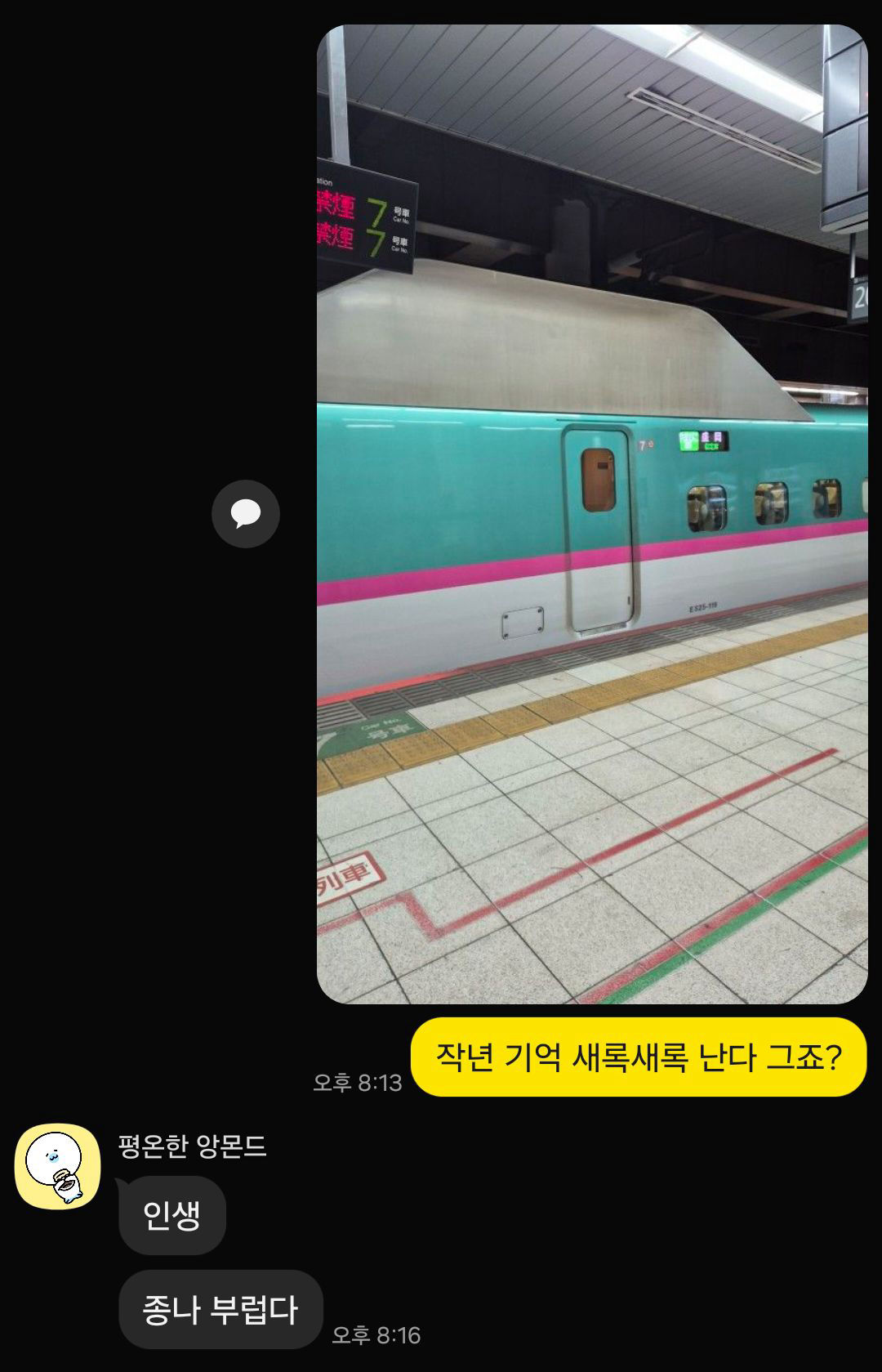 여담으로 카카오톡 대화 중 부럽다 발언한 건 저 친구가 지금 군대에 갇혀 있어서…